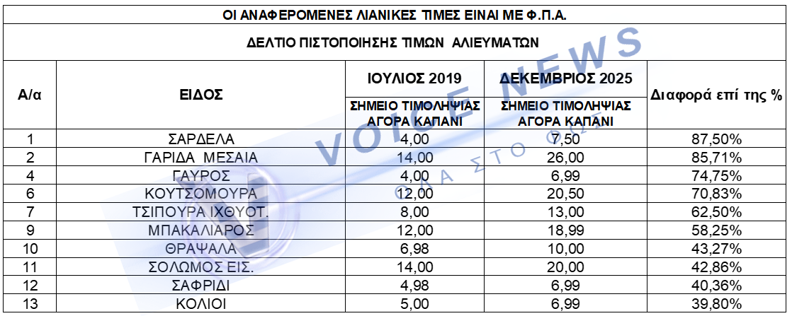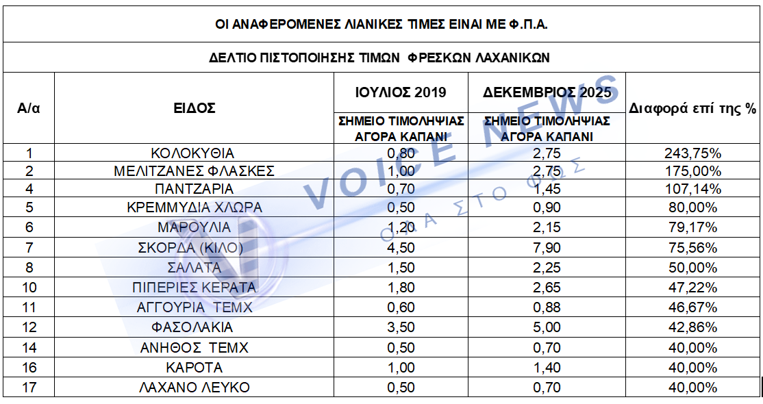 Η εικόνα της καθημερινότητας είναι αμείλικτη και οι αριθμοί που προκύπτουν από τις επίσημες τιμοληψίες δεν αφήνουν περιθώρια για παρερμηνείες. Η σύγκριση των τιμών μεταξύ 2019 και 2025 αποκαλύπτει μια βίαιη υποβάθμιση του βιοτικού επιπέδου, καθώς βασικά είδη διατροφής μετατρέπονται σε είδη πολυτελείας. Το κρέας, που κάποτε αποτελούσε σταθερά του οικογενειακού τραπεζιού, πλέον «εξαφανίζεται» λόγω αυξήσεων που αγγίζουν το 165%. Την ίδια στιγμή, τα αλιεύματα και τα φρέσκα λαχανικά, η βάση της μεσογειακής διατροφής, ακολουθούν μια εξωφρενική πορεία αισχροκέρδειας, εξανεμίζοντας τον μισθό πριν καν συμπληρωθεί το πρώτο δεκαπενθήμερο του μήνα. Τα επίσημα στοιχεία της Περιφέρειας για την περίοδο 2019-2025 σοκάρουν, καταγράφοντας αυξήσεις-φωτιά που αγγίζουν το 165%. Μια βίαιη υποβάθμιση του βιοτικού επιπέδου που μετατρέπει τη βασική διατροφή σε άπιαστο όνειρο για χιλιάδες νοικοκυριά. Το κρέας είναι πλέον είδος υπό εξαφάνιση από το λαϊκό τραπέζι».